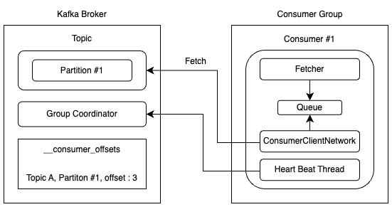 KafkaConsumer는 Fetcher, ConsumerClientNetwork 등의 주요 내부 객체와 별도의 Heart Beat Thread를 생성한다.